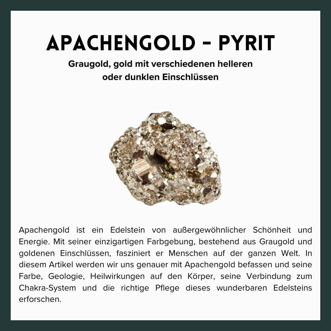Apachengold ist bekannt für seine faszinierende Farbpalette, die von Graugold bis hin zu goldgelben Nuancen reicht. Diese Farbgebung entsteht durch das Vorhandensein von Pyritachat und Markasit, zwei mineralischen Verbindungen, die dem Stein seine einzigartige Färbung verleihen. Die goldgelben Einschlüsse, die im Apachengold zu finden sind, verleihen ihm eine zusätzliche Dimension und machen ihn zu einem wahren Blickfang.