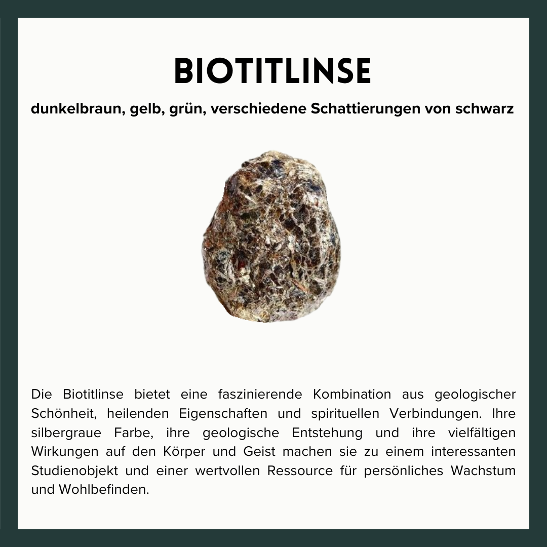 Die Biotitlinse ist nicht nur ein faszinierendes geologisches Phänomen, sondern auch ein kraftvolles Werkzeug für Heilung und spirituelles Wachstum. Ihre vielfältige Farbpalette, die von Braun über Gelb und Grün bis hin zu verschiedenen Schattierungen von Schwarz reicht, zieht unsere Aufmerksamkeit auf sich und regt unsere Sinne an.