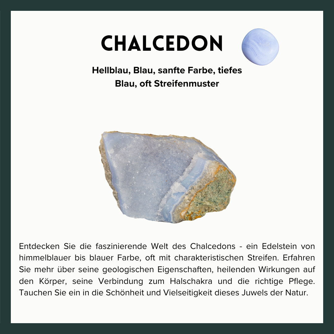 Ein Blick in die weite Welt der Edelsteine offenbart eine Vielzahl an Farben, Formen und Geheimnissen. Einer dieser faszinierenden Schätze der Natur ist der Chalcedon. Mit seiner charakteristischen hellblauen bis blauen Farbe und oft auftretenden Streifen zieht dieser Edelstein die Aufmerksamkeit von Sammlern und Heilpraktikern gleichermaßen auf sich. In diesem Blogartikel möchten wir uns näher mit dem Chalcedon beschäftigen und seine verschiedenen Aspekte beleuchten, einschließlich seiner Geologie, Heilwirkungen auf den Körper, Bedeutung im Chakra-System und der richtigen Pflege.